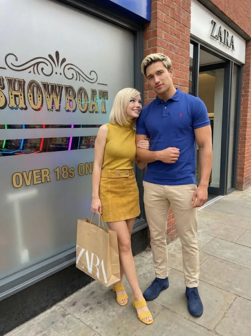 (Series 1) Gaynor Mellor and Mason Green outside The Showboat on Hammersmith Broadway, circa June 2022